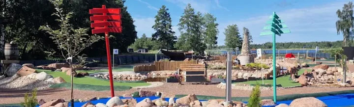 The 12-hole adventure golf course at Eckerö Camping & Stugor is beautifully landscaped and offers a great outdoor activity for both adults and children - perfect for fun and relaxation.